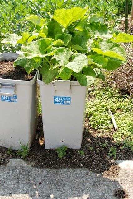 そのうちの一つが、下の写真に見えるゴボウの葉が茂ったダストボックス。