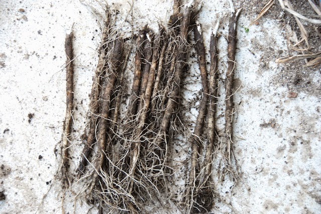さて、こちらは初めて秋に種を撒いた春ゴボウの初収穫。