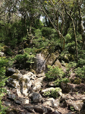 | 昨日は久しぶりに甘木(現在の朝倉市)の古処山に登った。この山は全体が石灰岩から出来ている。 原始林として天然記念物に指定されているツゲが岩の間から新芽を吹き出し緑が鮮やかになってきた。 |