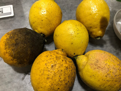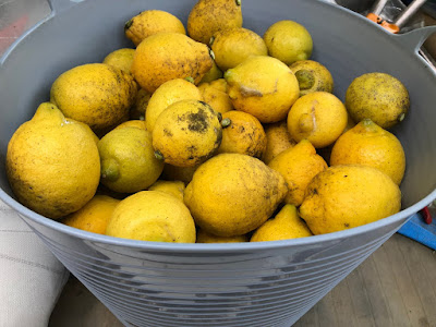 | レモンも収穫してそのまま置いておくと、果汁が減ってスカスカ感が出てくる。 お裾分けするにしても早めがいいだろう。 |