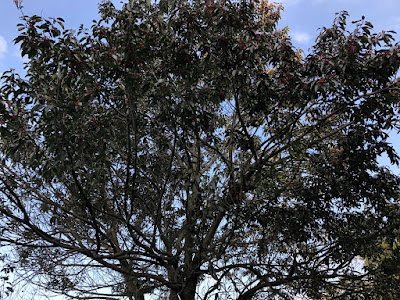 | 下の方の枝は2年前の3月に切り落とした。 それでも今も上の方の枝で少し陰になっているので、今年のスス病の発生と関係あるのかも。 |