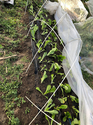 また先日まで、巨大なミズナが育っていた防虫ネットを掛けていた畝では、抜いた場所にそのまま苗を植えていった。