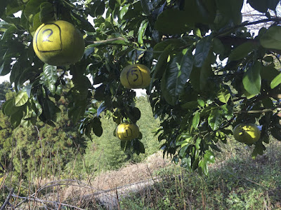 我が家の果樹園では、いろいろな果樹が鳥や猿の被害にあってきたが、ここ数年人による盗難被害にあう晩白柚。