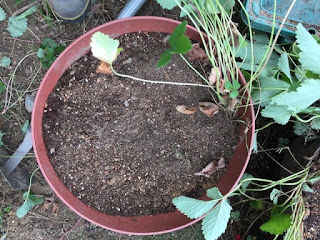こんな感じで、プランターの端に室外機側に残っていたワイルドストロベリーの苗を植えていった。