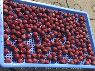 人間も干上がるが、今日も梅の天日干しにはもってこいだ。
