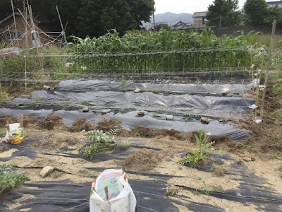 下は雑草予防で6月の初めにマルチをかけていた時の写真。