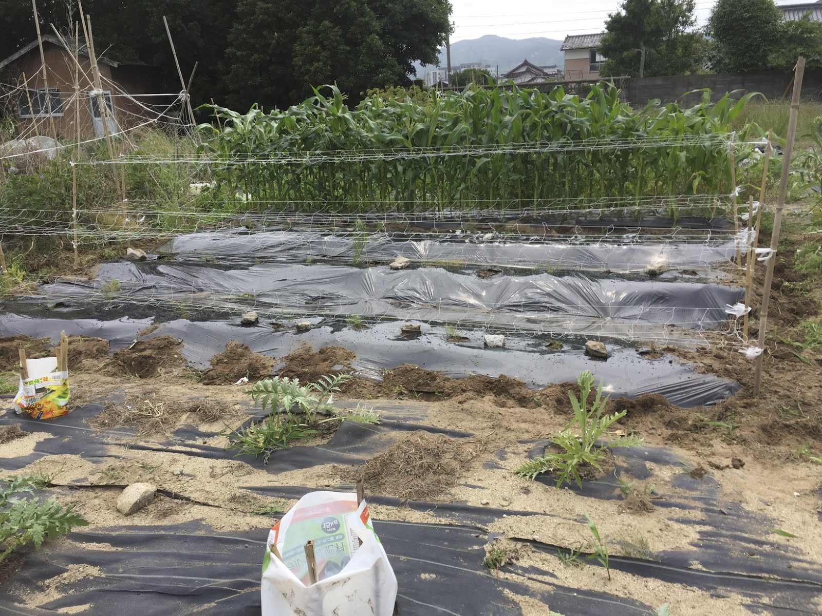 下は雑草予防で6月の初めにマルチをかけていた時の写真。