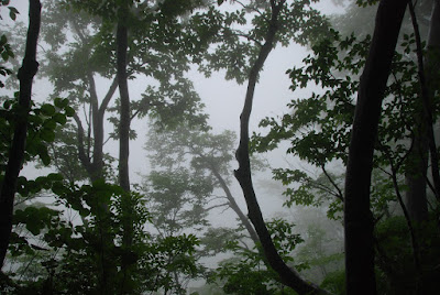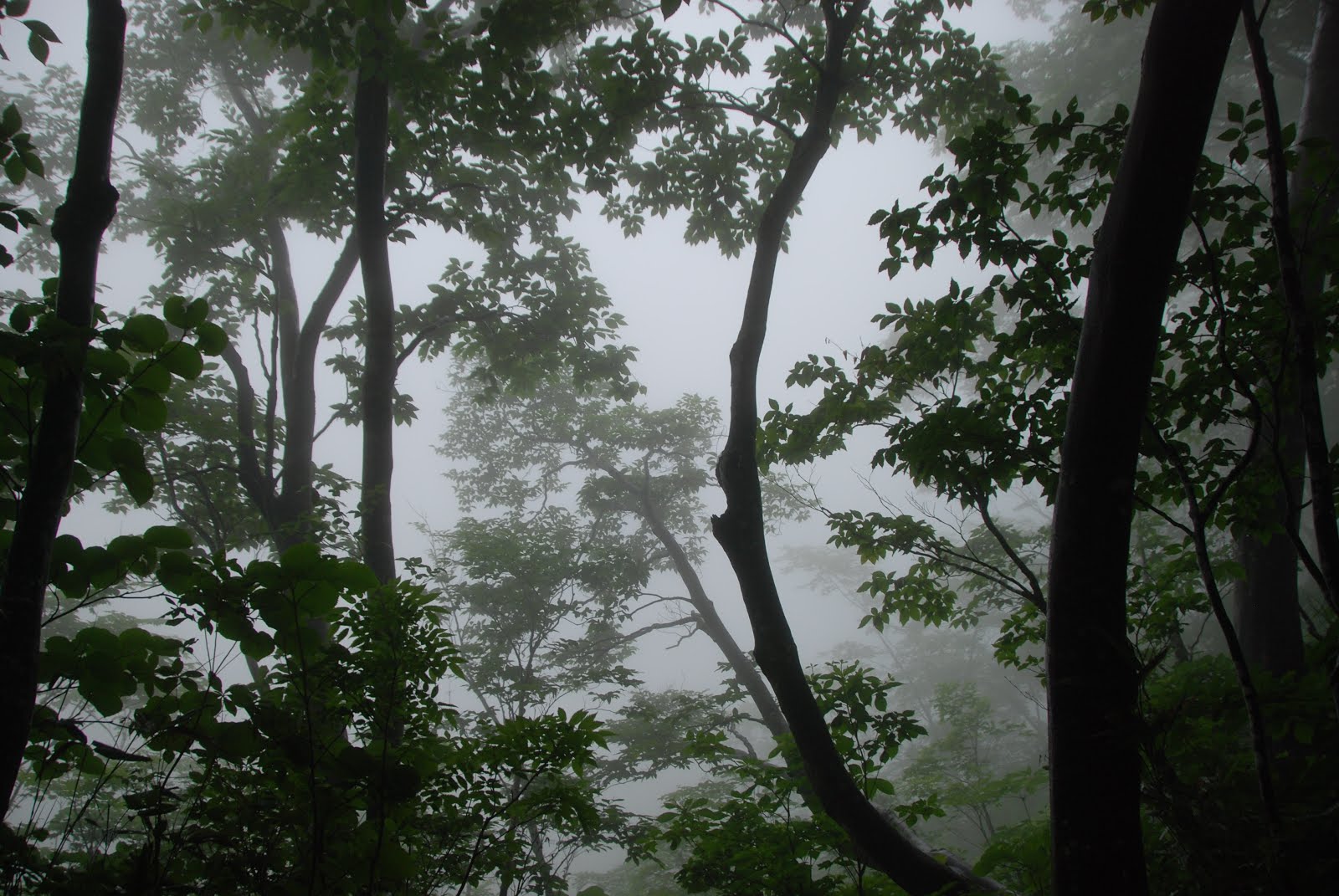 無事車に戻ったが、もう一つの目的の綺麗なブナ林がある「滝の小屋」の方に行っても、ブナ林は見れないだろうという思いと、そこまでの道を進むのは深い霧の中、危険だと判断し、駐車場から来た道をゆっくり引き返すことにした。