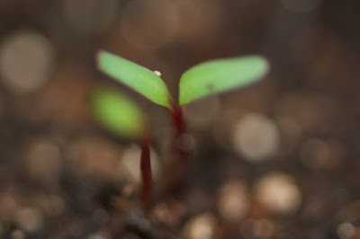 初めて育てているので、どんな感じの芽出しだろうかと思っていたが、早くも赤い色の茎が出て新鮮!