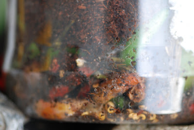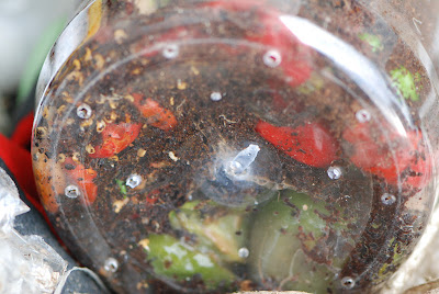 上のスペースにみみず君を入れ、どこへでも自由に移動出来るようにした。気が向いたら美味しいと思う餌の方に降りていくはずだ。果してみみず君は刺激の強いトウガラシの区画に寄り付いてくるだろうか?