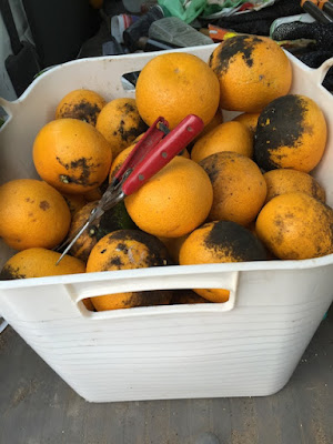 | 今年の八朔は、スス病で全て汚れている。 食べるのには全く問題ないのだが、お裾分けするときは少し気が引ける。 |