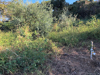 で、果樹園のオリーブの幼木やジャバラの苗木がある周囲に倒れているコセンダングサを1本1本抜いていった。