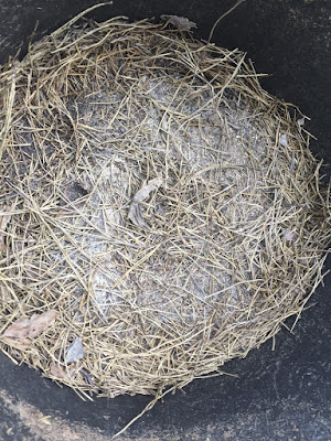 ところで、ビニール袋で保存していた枯葉の松葉は、10月の台風でビニールが破れて、松葉が辺り一面に散乱していた。