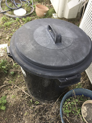 | 約10ヶ月、このポリバケツで保存していた。 ボカシ肥料の力で、堆肥化が促進されているのではと期待していた。 |
