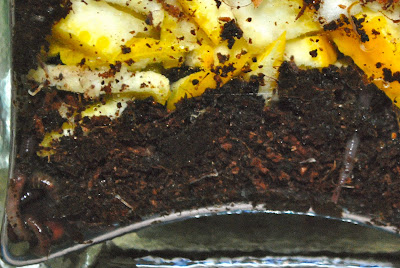 | 環境改善後、左下の真っ黒なみみず君たち元気になればうれしいのですが。動きが全く見られないと思ってしばらく眺めていると動き始めた。どうやら大丈夫? |