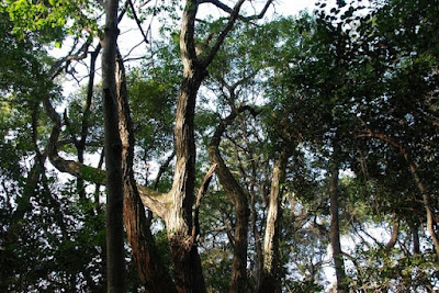 | 先週はこの真ん中に見える木でコゲラに逢った。 コゲラがいたのはクスではなくでコナラの木だった。 |