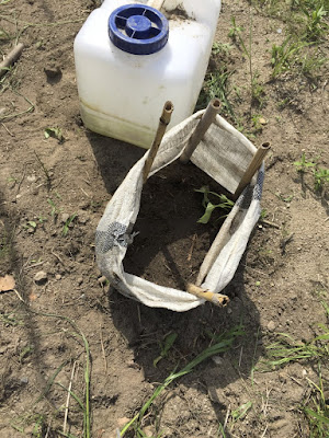 移植したのは、サツマイモの挿し穂苗と、ポット蒔きしていたゴーヤやインゲンの苗。