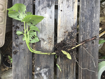 さて、今日はこの先1週間の天気予報を信じて、やっと芽が出てきた苗などの移植作業だ。