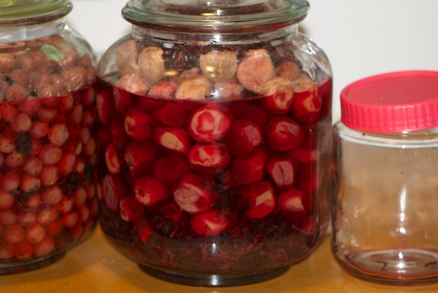 しなやかさを保ったまま置いておきたいので、梅が干されている間は梅酢とともに瓶の中で留守番だ。