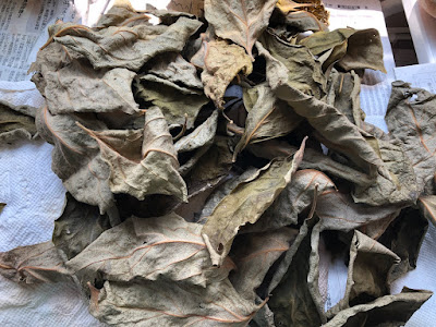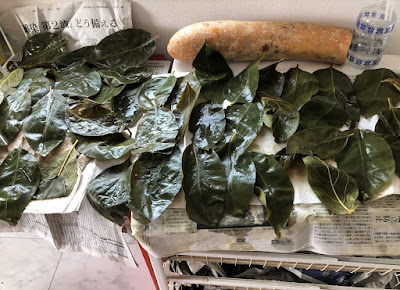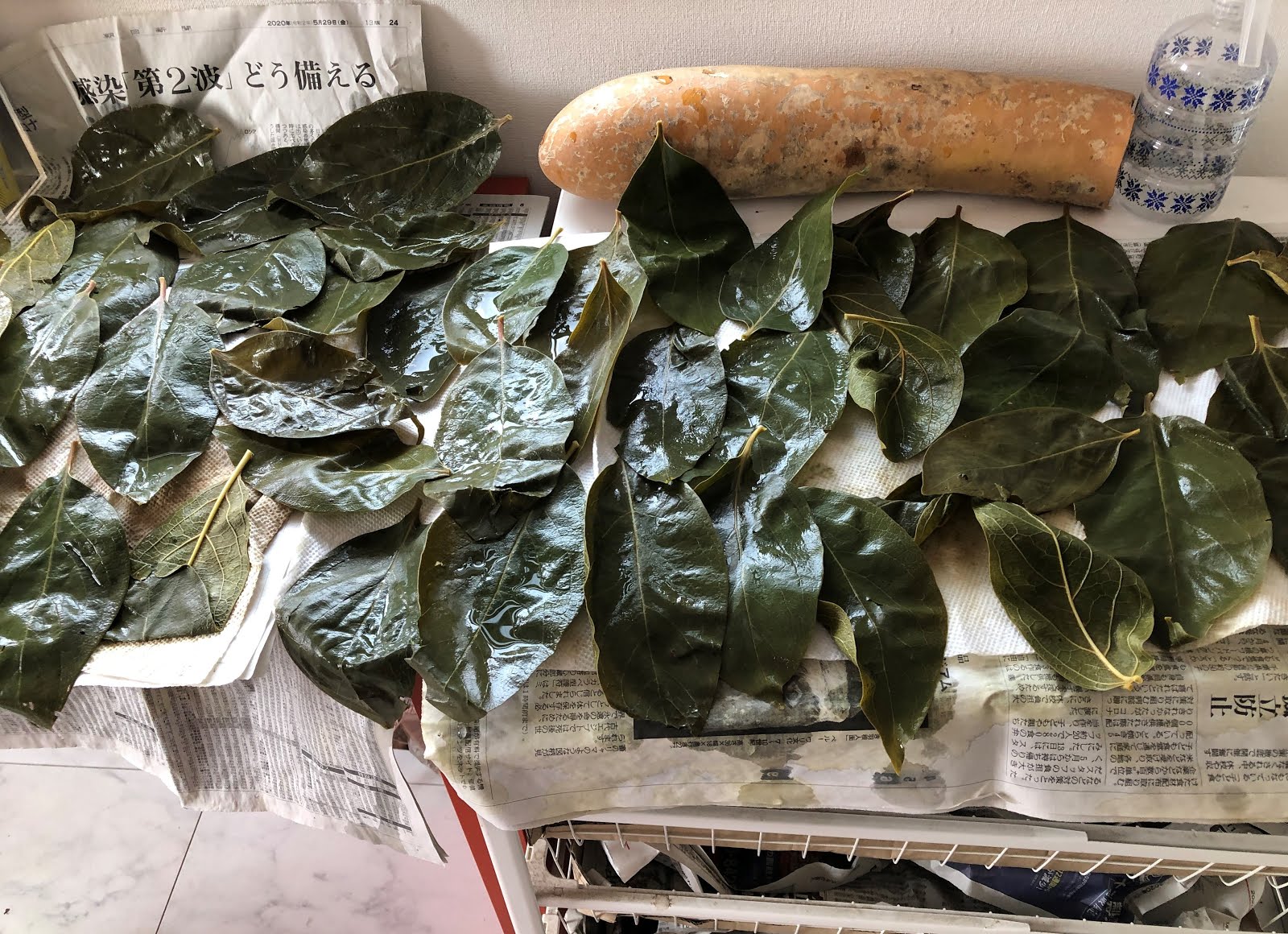 お茶を作るためにビワの葉や柿の葉を湯がいて数日干して乾燥させていたのだ。