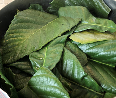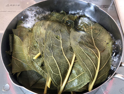 こちらは同じくお茶を作るために湯掻いている柿の葉。