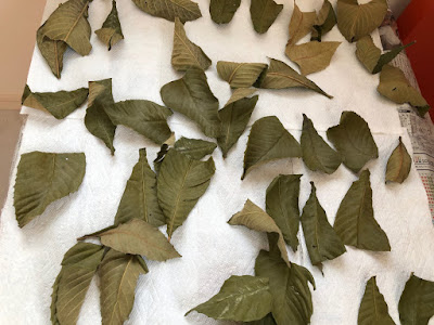 こんなビワの葉を窓辺で4日間ほど干しておいた。