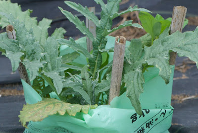 風に弱く、雨に弱く、冬に弱く、アブラムシと蟻の被害に遭いやすいアーティチョーク。 今年育てている苗も含め、少しでも多くの苗に、夏、冬を越して欲しいのだ。 |