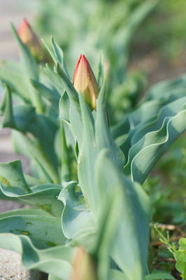 チューリップは、まず3/23に赤いチューリップのつぼみが顔を出した。