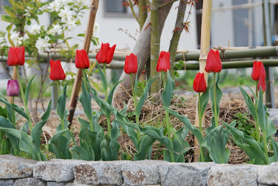 チューリップは、まず3/23に赤いチューリップのつぼみが顔を出した。