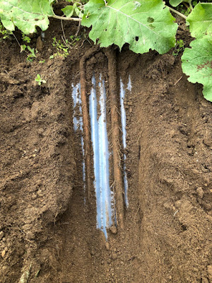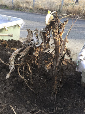 これまでのゴボウ栽培では、ビニール袋栽培では、袋や周りの土を外して、土の上に林立するゴボウを眺めるのは面白かった。