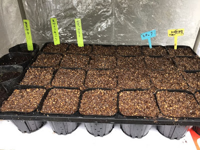 さらに、温室中段の現在10℃前後の棚でも芽出しがうまくいくかどうかにも興味がある。