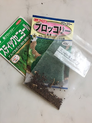 用意したのは、昨年収穫したスペインキャベツの種とブロッコリーや茎ブロッコリーの種だ。