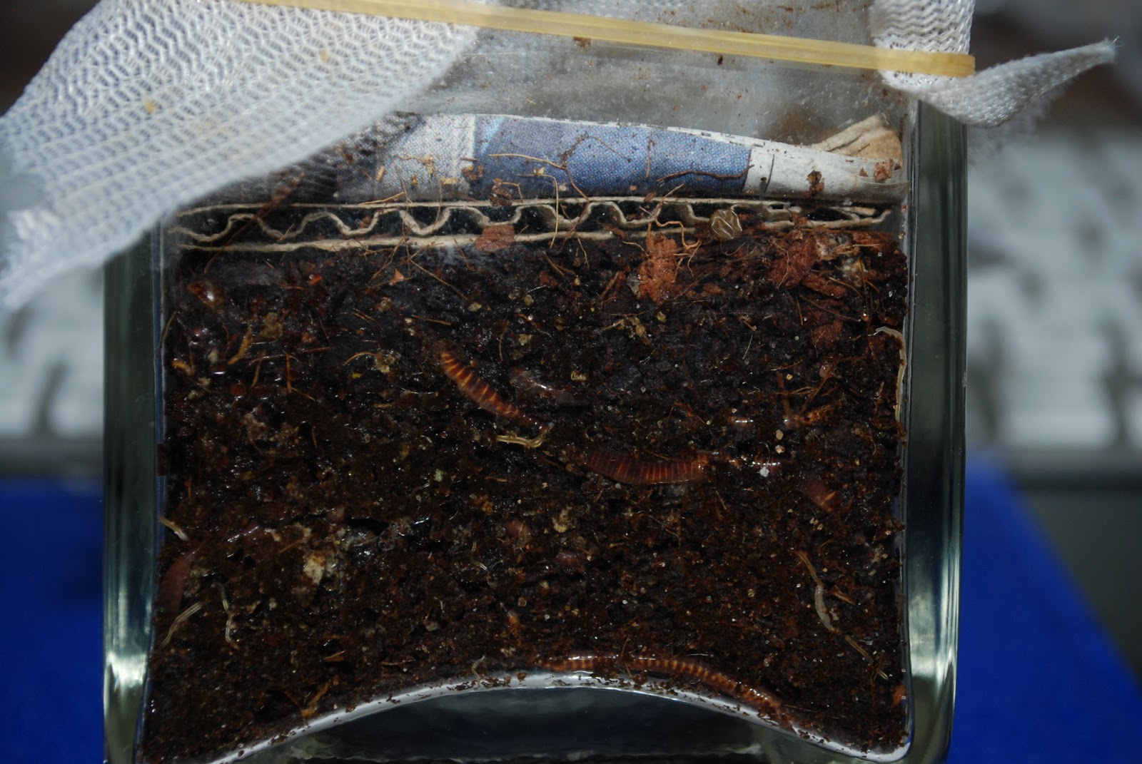 | みかんの皮さらに小さくなったのかと5日ぶりに覗いてみたらみかんの皮は完全に消失 やはりみみず君が食べてしまった以外には考えられない。 |