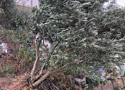 ただ、前回の台風で倒れたつる植物の畝やオリーブの木は、どうしようもないのでそのままにしている。