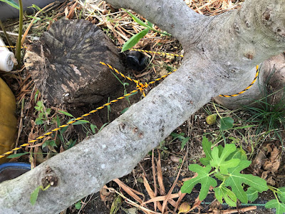 さらに、全体をかこったロープを近くで一番頼りになりそうなイチジクの木の幹に固定した。