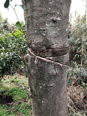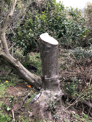 | こちらは、2年前の雑木。 大きくなりすぎて、周りのミカンの木々が日陰になるようになった。 以前はこの位置から見えていた海も見えなくなっていた。 |