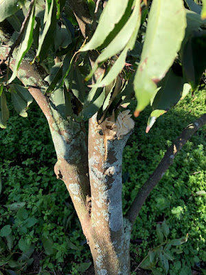 | 晩白柚は2本あるのだが、こちらの木は最近活躍できなかった。 この木も、日当たりも風通しも良くなり嬉しそうだ。 |