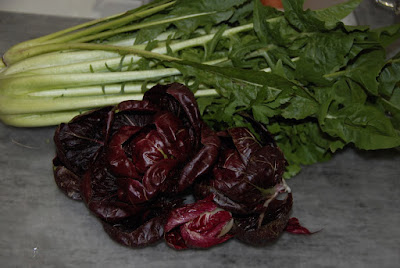 通常のチコリーは非常に苦いので、15分ほど湯通しをして、少し苦みを抜いて料理するのだが、パラロッサも少し苦みはあるのだが、ヨーロッパでサラダに出てきた記憶があるので、今日も同じように生で頂いた。
