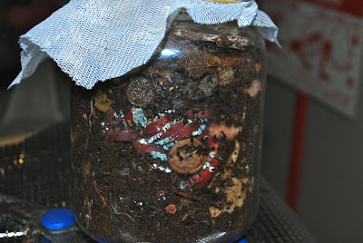 | 里芋の親芋は残り僅か。多くのみみず君が食べにきている。 |