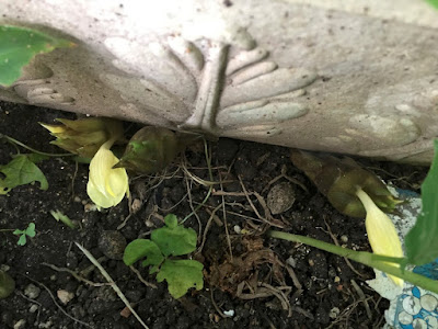 | 長いズッキーニの蔓葉などもここに侵入しているようだ。 |