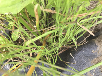 ラッキョウはとても力強いので、少々雑草がはびこっても、負けずに育ってくれるに違いない。