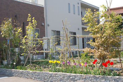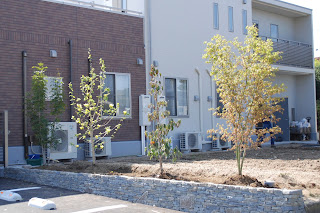 | 少しは目隠し効果も出てきた?4本のシンボルツリー。 |