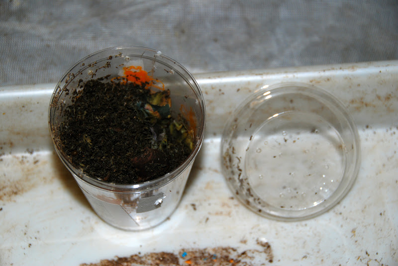 なんとビックリしたのはひっくり返って中に入り込んだ形になった新聞紙がほとんど食べられている。1ヶ月でこれだけ食べられているのはかなり内部環境が良かったのだろう。