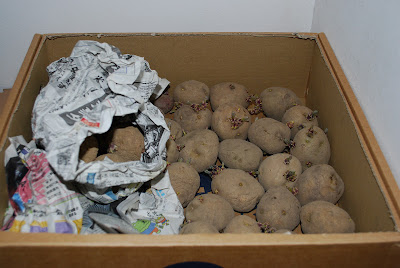 日陰で芽出しをおこなっていた種芋たちだが、出番が予定よりかなり遅くなった。