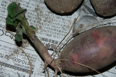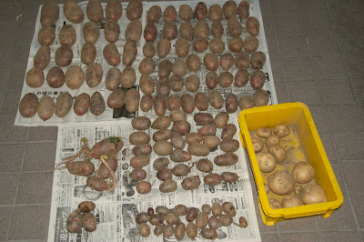 | 今日収穫したデストロイヤー.なぜか前回収穫漏れの男爵芋も混じっている。 |