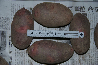 | ん!大きさも揃っているようだし上等のようだ。 右下のケースにあるのは収穫忘れの男爵芋。 |