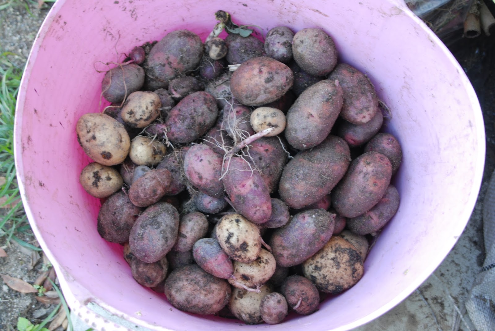| 今日収穫したデストロイヤー.なぜか前回収穫漏れの男爵芋も混じっている。 |