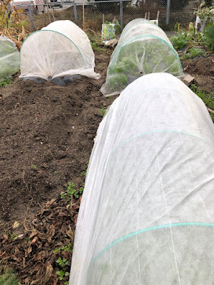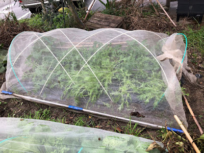 昨年までの我が家の野菜の防寒処置は、パオパオトンネルとビニールトンネルが主体だったのだが、今年は秋に防虫ネットをかけていた畝がたくさんある。