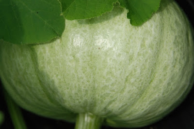 | 収穫する2週間程前の白カボチャ、この時期は真っ白だ。 |