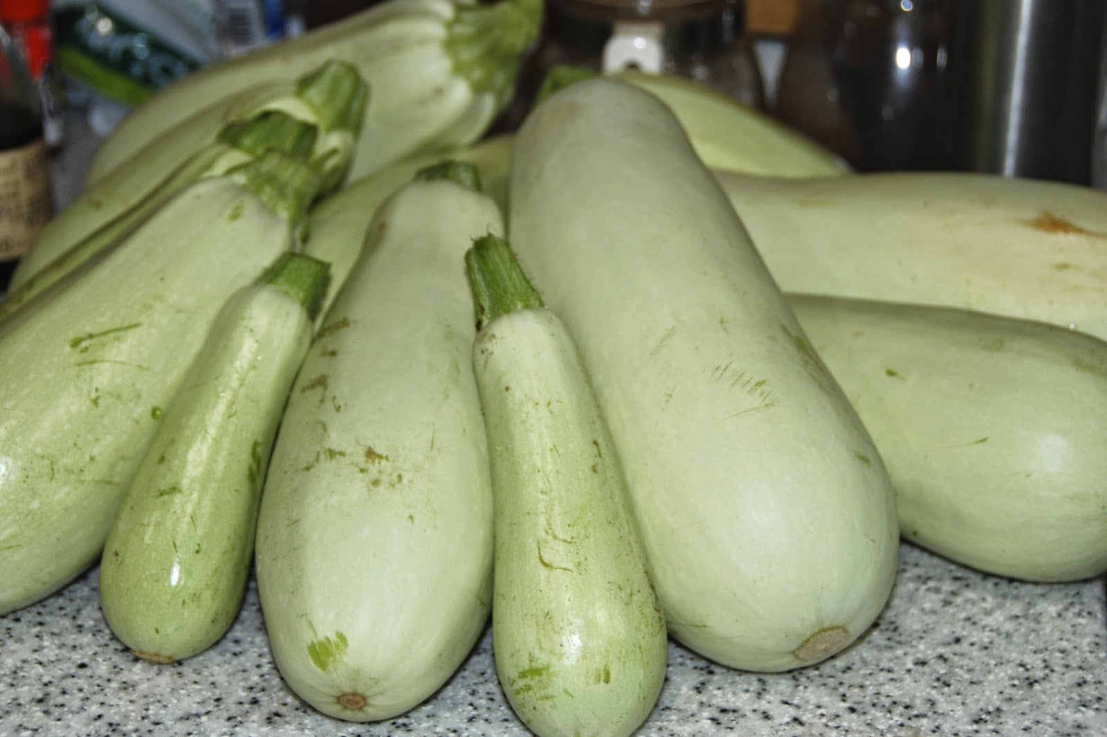| 白ズッキーニの成長の早さには驚きだ。 長さは大きなもので25cm強。太さが凄い。 |